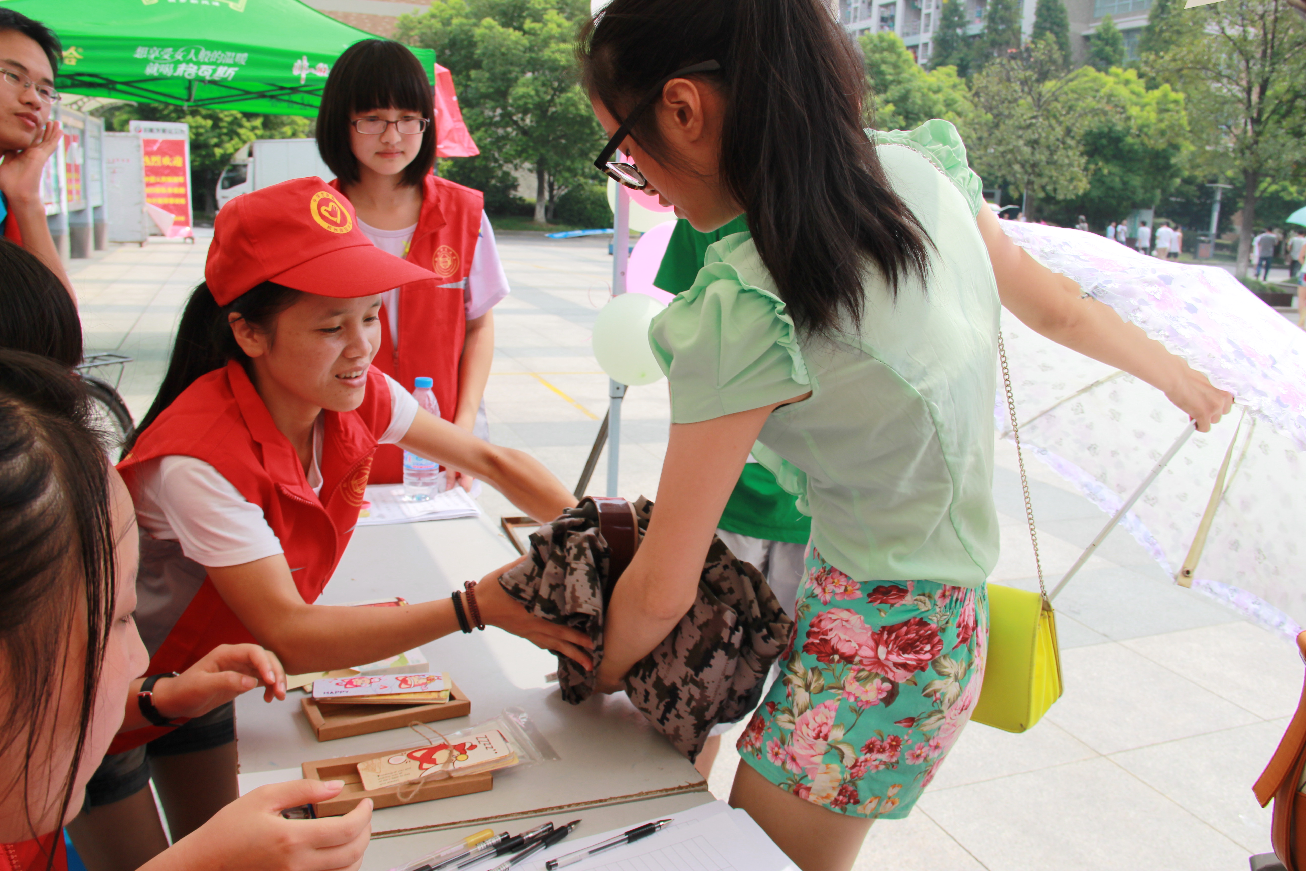 本次活动以实名制登记捐赠者信息的方式,收集新生们爱心捐赠的军训服装。由志愿者将服装义卖,所得的善款最后将全数捐赠给远在北方却已连连遭受冷空气的袭击的蒙古六苏木小学的孩子们,给他们带去寒冬的第一阵温暖。现场人头攒动,大家纷纷将一套套饱含着同学们辛苦汗水的军训服交到志愿者手中,希望给内蒙古的小朋友们带去温暖与关怀。