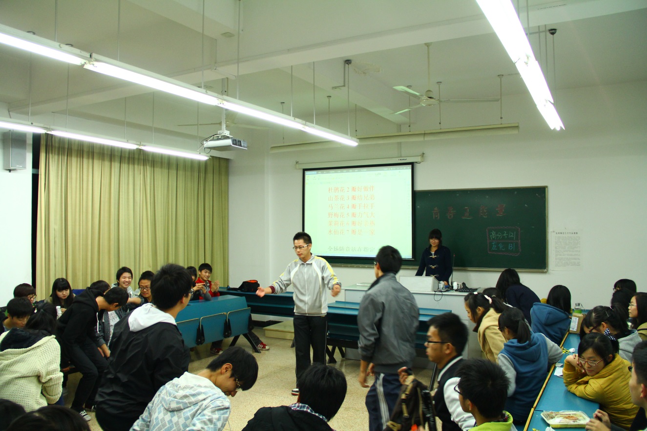 活动以有奖竞答环节中未答对的同学的惩罚——高歌一曲收尾,就在三位同学动听的旋律中,活动圆满结束。(文/李楠 图/姜伟)