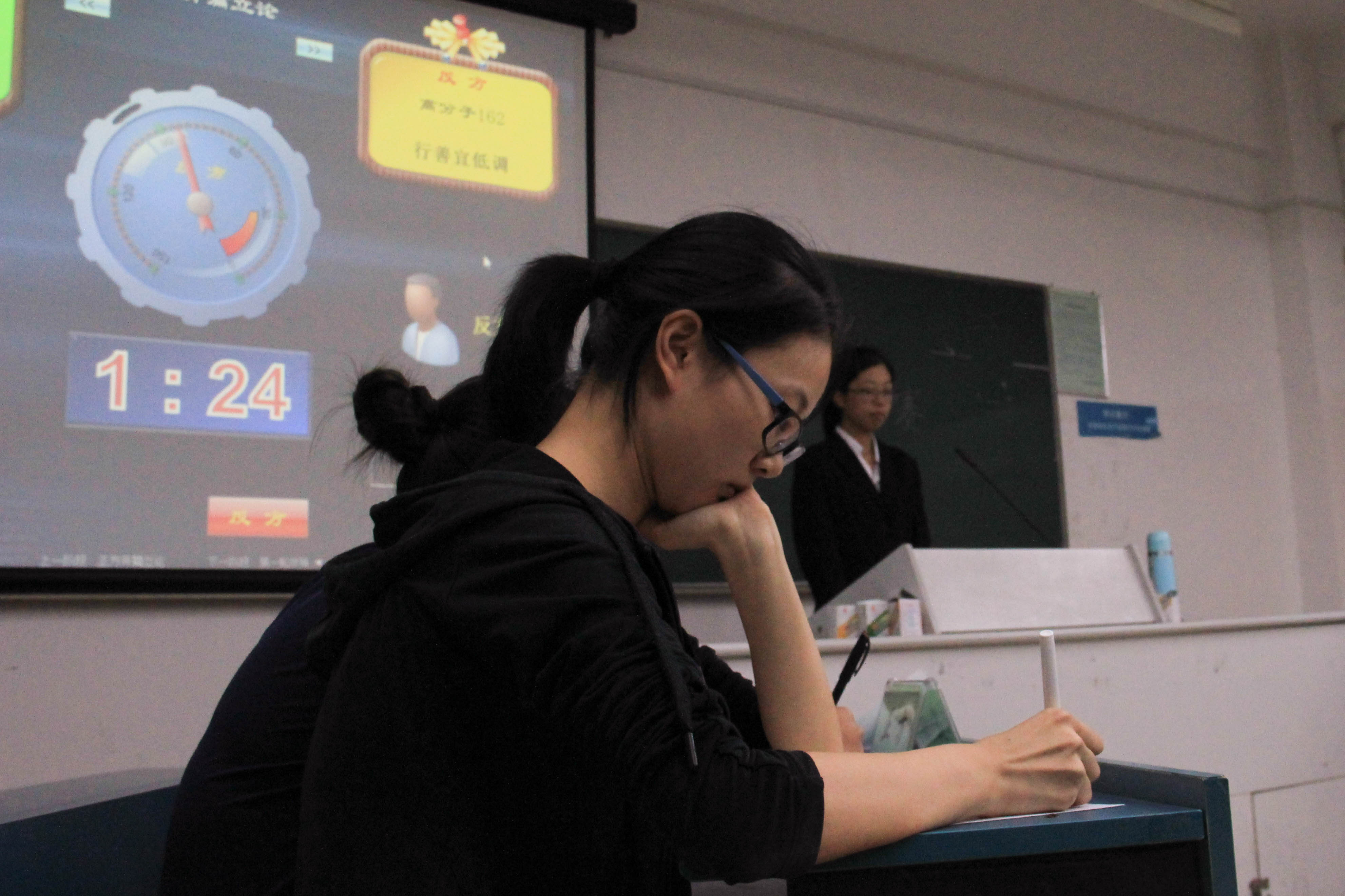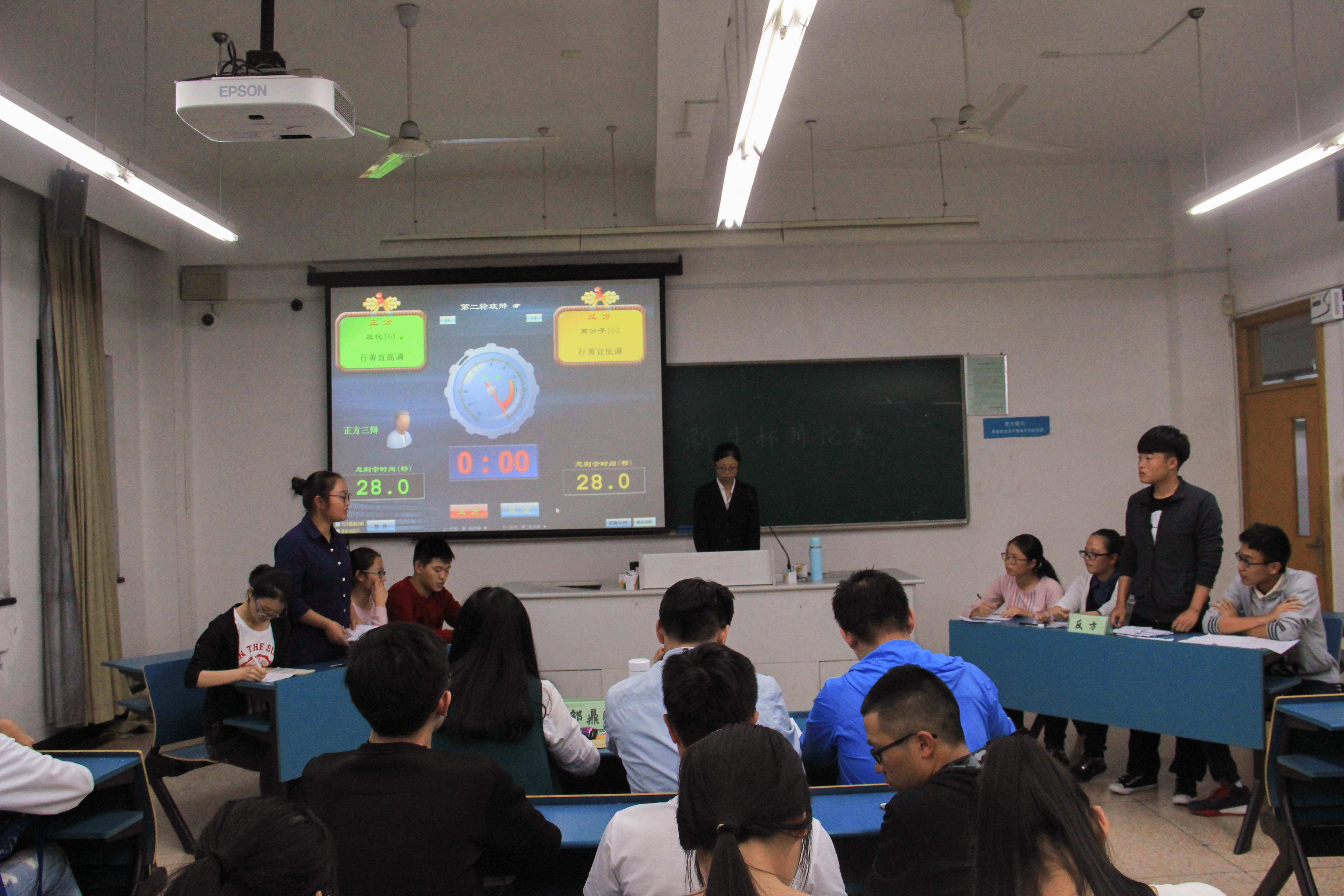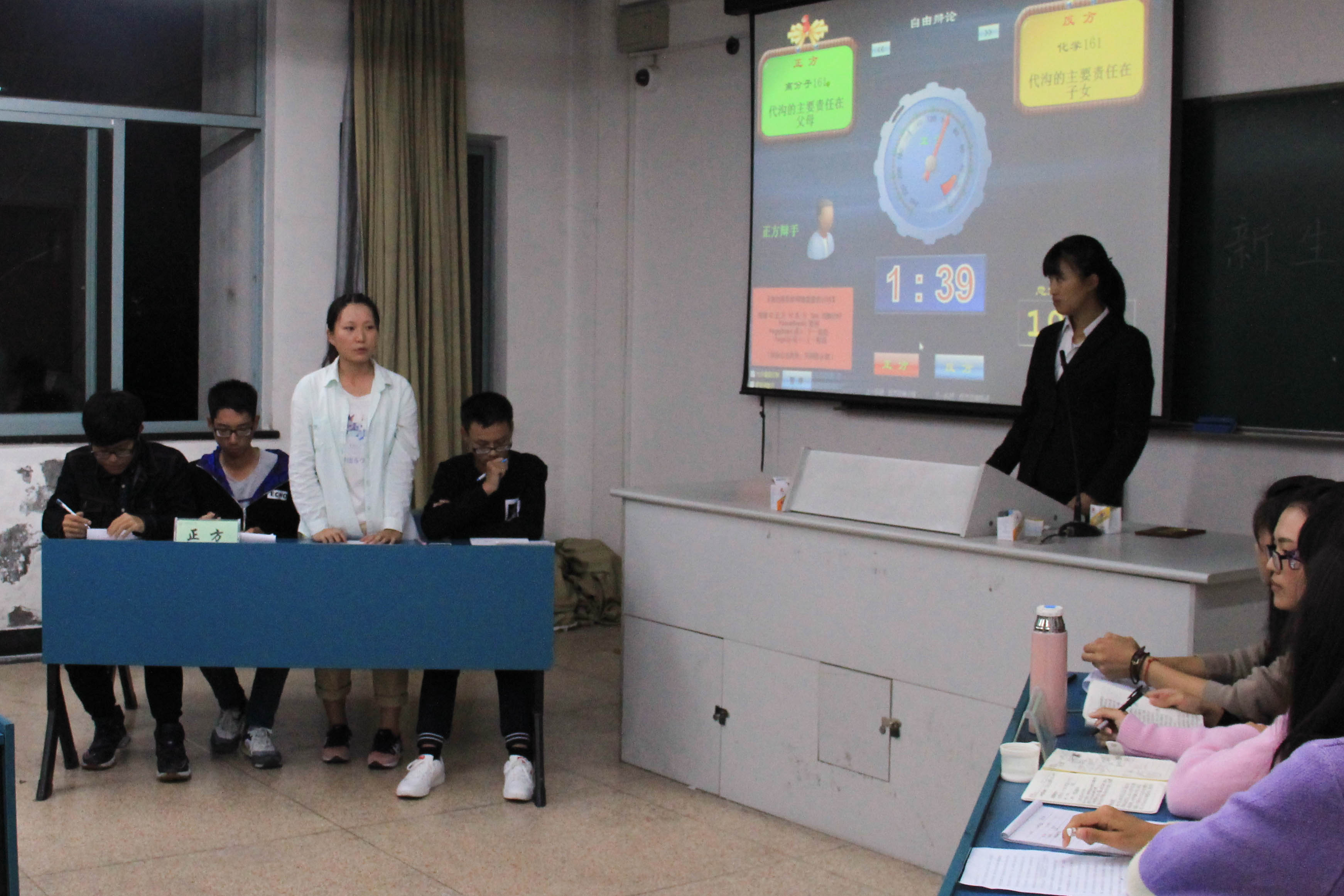 10月11日19:00,色情聊天16级同学于A-313举行了新生杯辩论赛初赛。每班派出四位辩手进行辩论。来自学院辩论队的学长学姐作为本次比赛的嘉宾出席。