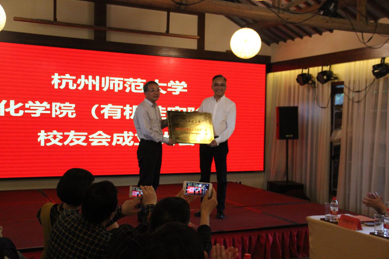 学校党委副书记王利琳代表学校全体师生,向材化学院校友会的成立表示热烈祝贺!并通报了学校在教学、科研、学科建设、学生培养、新校区建设及校庆活动安排等各方面情况。强调校友是学校扩大社会影响力最有效的载体,是学校事业发展最强大的动力、是最值得信赖的依靠。并对校友会的工作提出了要求和希望,希望校友们能加强与母校的交流合作,希望校友们为母校的建设与发展作出更大的贡献,也希望母校能更好地为校友们提供服务和帮助。最后诚挚邀请校友们参加母校110周年校庆活动,多回母校走走看看。王利琳副书记宣布杭师大材化学院校友会正式成立,并举行了授牌、授旗仪式。