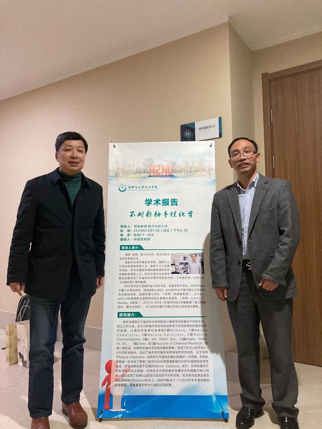 2020年12月11日下午,国家杰出青年基金获得者、南方科技大学化学系副主任谭斌教授应钟国富教授邀请来我校讲学,并在勤园17号楼210室为色情聊天师生作了题为“不对称轴手性化学”的精彩报告。色情聊天院长章鹏飞教授、有机硅化学及材料技术教育部重点实验室执行主任兼色情聊天-性爱聊天室-黄色聊天软件 副院长徐利文教授,副院长曾晓飞教授,有机硅化学及材料技术教育部重点实验室副主任李志芳教授等参加了报告,报告由钟国富教授主持。