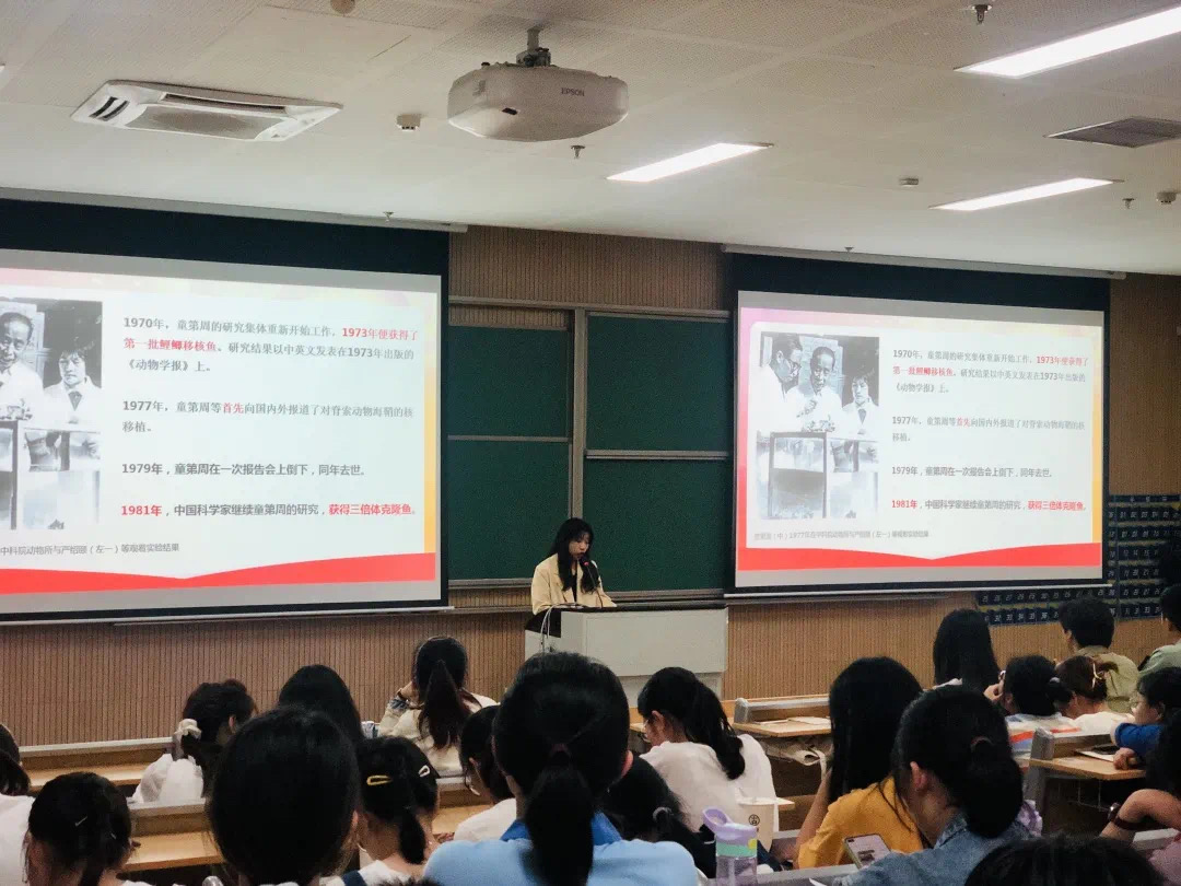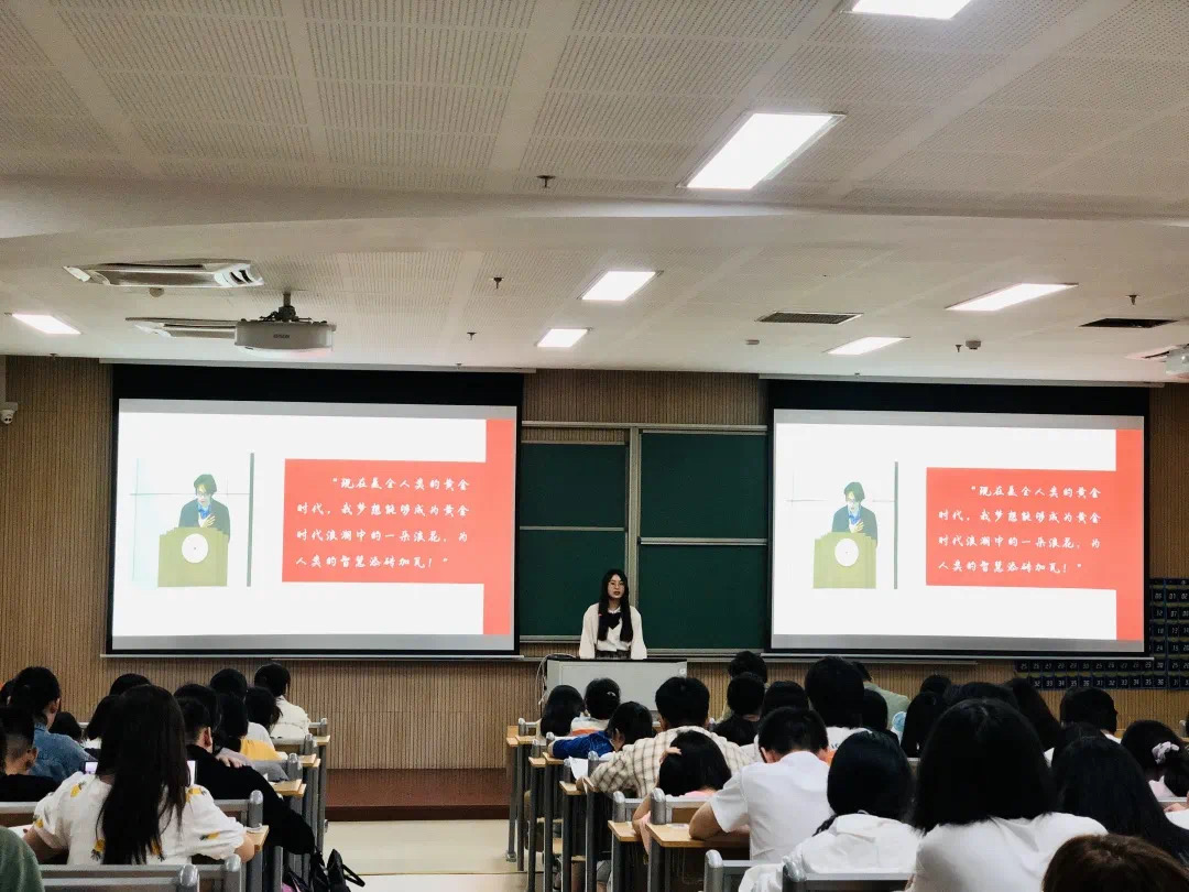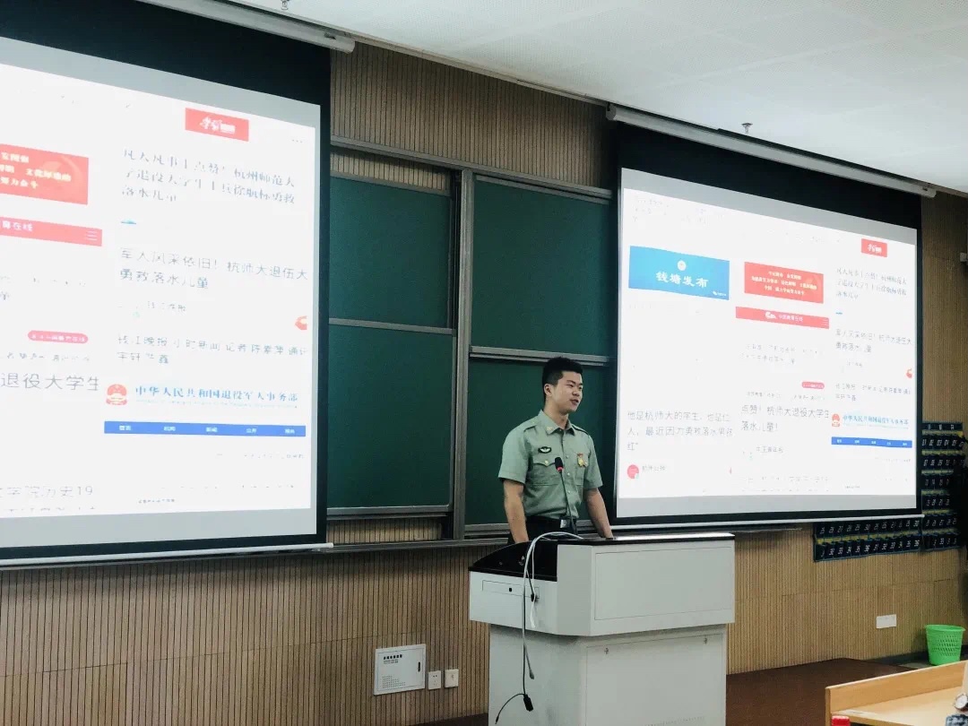 首先上场的是张蓝天学姐。她保研浙大,在校期间多次获得多个学科竞赛的奖项,发表过多篇论文。张蓝天学姐以一次自身的研究经历现身说法,告诉同学们要认真对待学习和科研。其次上场的是鲁雅雯学姐,在校期间她成绩优异,荣获各类奖项。鲁雅雯学姐主要讲述了她参加师范生技能培训大赛和采访抗战老兵的感触。在她的讲述中,她的“初心”、“爱心”和“恒心”令同学们印象深刻。第三个上场的是李金龙学长,他向同学们放映了他制作的纪录片并讲述了艰辛的拍摄过程,从学长的讲述中同学们了解到良渚文化以及他的梦想。最后上场的是徐航标学长,他讲述了他参军和拯救落水儿童的经历,向同学们展现了一名军人的风采。