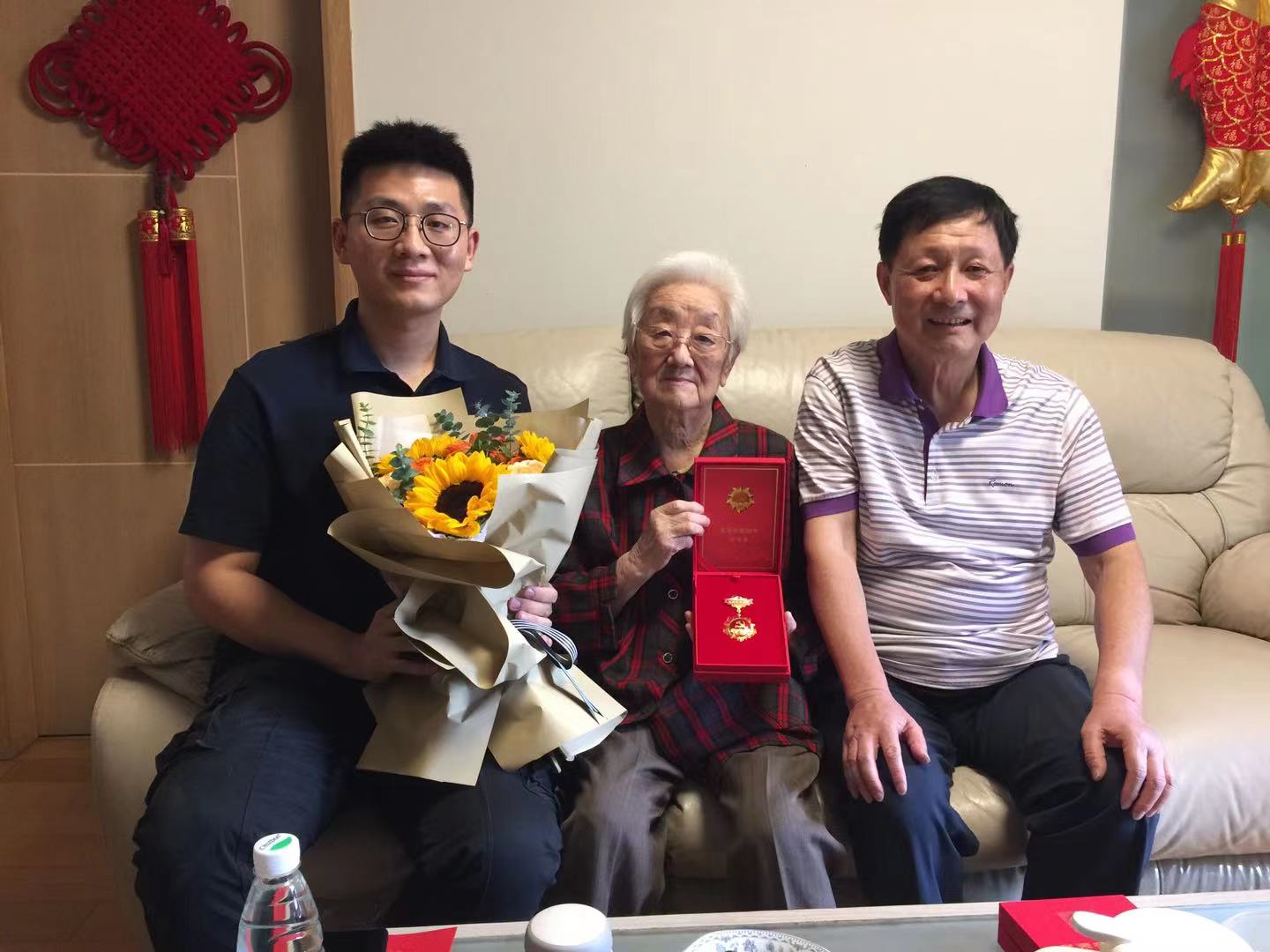 为迎接中国共产党成立100周年,6月21日下午,材化学院退休党支部书记盛国定、学院党委组织员韩秉峻代表学院前往老党员家中看望慰问并颁发“光荣在党50年”纪念章。