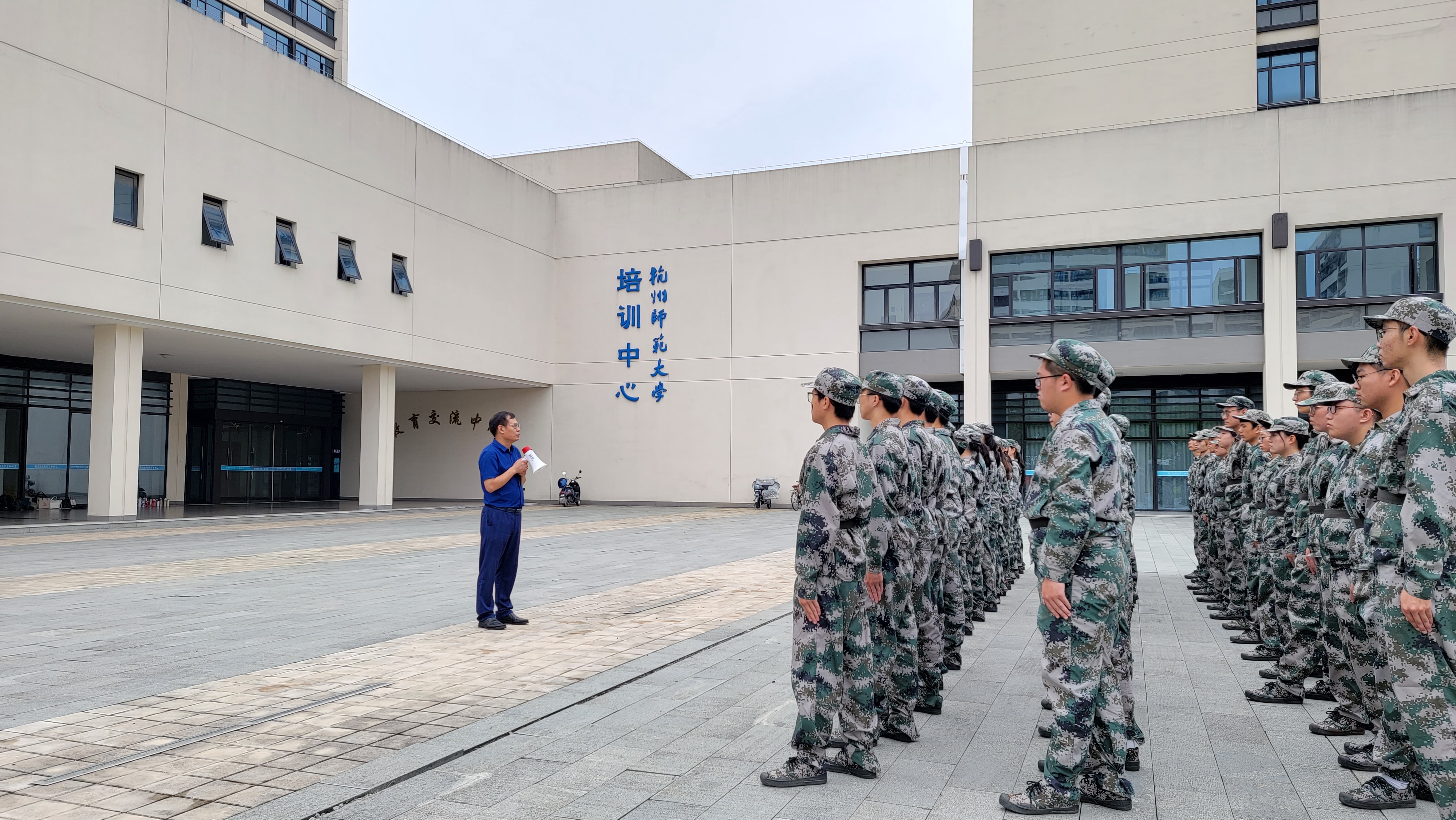 章鹏飞院长代表学院对参训学员示慰问,对承训官兵在军训期间的辛勤付出表示感谢。他对同学们昂扬的精神面貌表示高度赞许,并指出,军训能够在身体素质、意志品质等各方面给同学们带来极大的提升,希望大家能够好好珍惜这一段难得的经历,锻造强健的体魄,打造坚强的意志,树立集体意识,培养家国情怀。