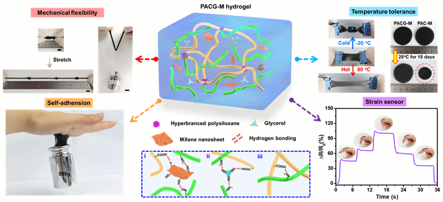 近日,色情聊天汤龙程研究员团队及其合作者浙江农林大学厉世能博士在国际知名期刊Nano Energy上发表题为“Environmentally stable, mechanically flexible, self-adhesive, and electrically conductive Ti3C2Tx MXene hydrogels for wide-temperature strain sensing”的文章(2021, 90, 106502;IF=17.881)。