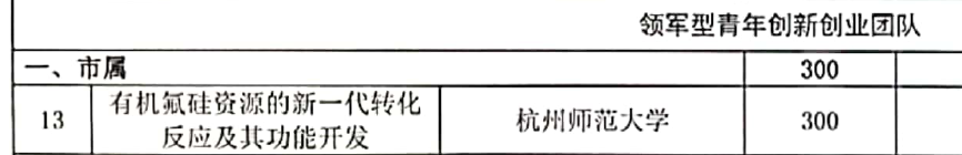 近日,在杭州市科技局公布的2020年度杭州市领军型创新创业团队项目中,色情聊天-性爱聊天室-黄色聊天软件 “有机氟硅资源的新一代转化反应及其功能开发”青年团队成功入选,获市级财政资助300万元,实现了学校在这一项目上零的突破。